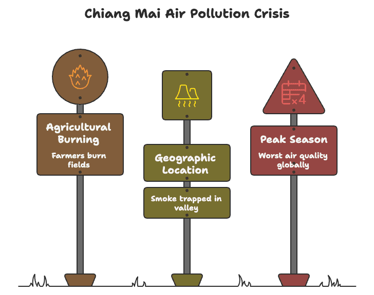 - Burning season health issues (February-April air pollution causes respiratory problems)